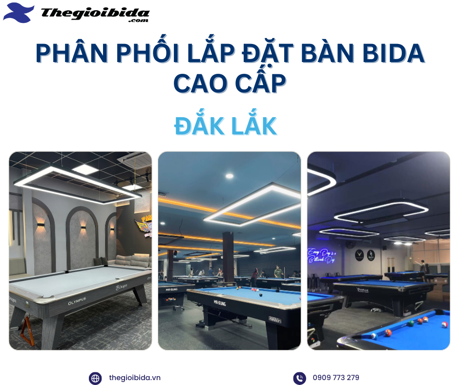 Nếu bạn đang tìm kiếm đơn vị phân phối và lắp đặt bàn bida cao cấp tại Đắk Lắk, hãy liên hệ ngay Thế Giới Bida để được tư vấn chi tiết và báo giá tốt nhất.