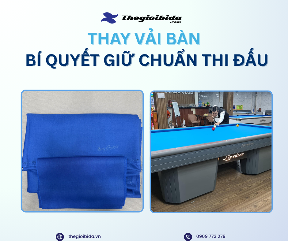 Thay vải bàn bida đúng lúc không chỉ giúp bàn “chạy” mượt hơn, mà còn giữ uy tín quán. Nếu bạn muốn quán luôn trong trạng thái “chuẩn thi đấu” và thu hút người chơi chuyên nghiệp, hãy để Thế Giới Bida đồng hành cùng bạn – dịch vụ nhanh, chuẩn và tận tâm.